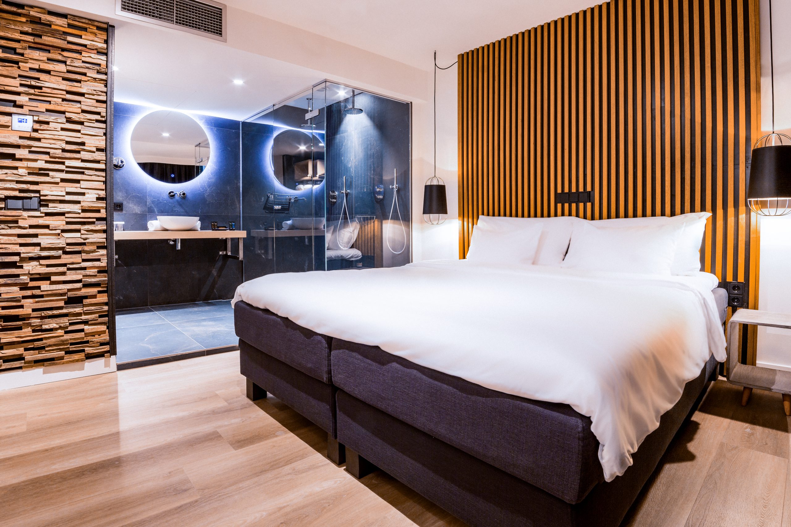 Op deze nieuwste en ruime (40m2) tweepersoonskamer met apart woongedeelte is het heerlijk verblijven voor diegene die net wat meer ruimte zoekt. Deze luxe kamer met heerlijk bed (Nilson boxspring – 180×210) en gave open badkamer heeft een dubbele douche en apart toilet. Bij het aparte zitgedeelte met TV vind je een lekker plekje om te dineren of te werken.